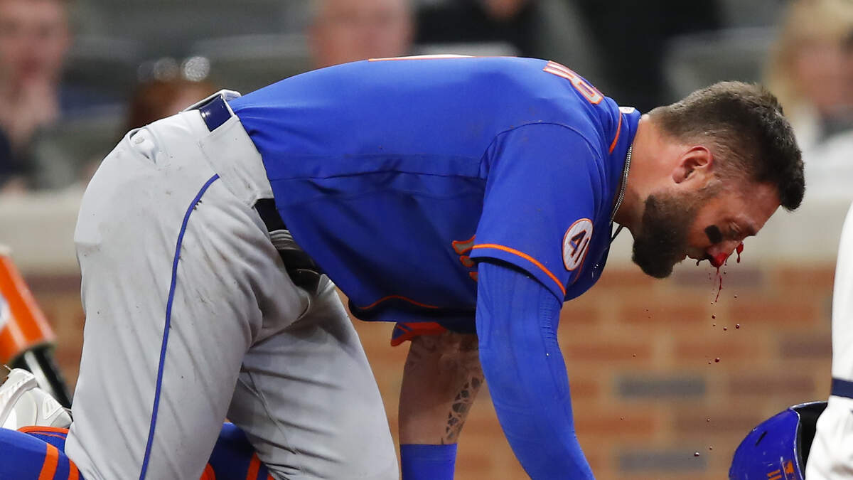 It's impossible to not gasp when you watch the moment Mets' outfielder, Kevin Pillar, got popped in the face by a fast pitch thrown by Braves pitcher Jacob Webb. The bases were loaded, it was the top of the 7th inning and Pillar was up to bat. The count was 1-2 with two outs. The next pitch thrown slammed into Pillar's face and he instantly fell to his knees with blood pouring from his face. See the terrifying moment below. <<<WARNING>>> the video is hard to watch!