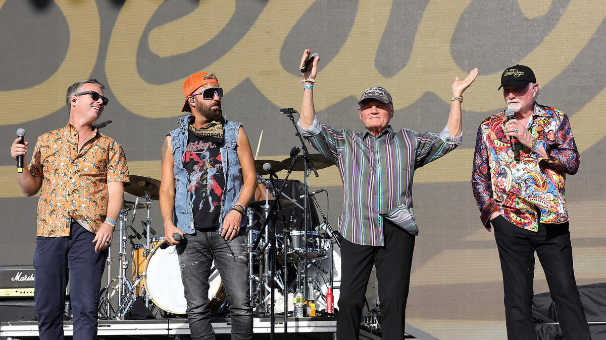 INDIO, CALIFORNIA - MAY 01: (L-R) Brian Eichenberger of The Beach Boys, Preston Brust of LOCASH, and Bruce Johnston and Mike Love of The Beach Boys perform onstage during Day 3 of the 2022 Stagecoach Festival at the Empire Polo Field on May 01, 2022 in Indio, California. (Photo by Amy Sussman/Getty Images for Stagecoach)