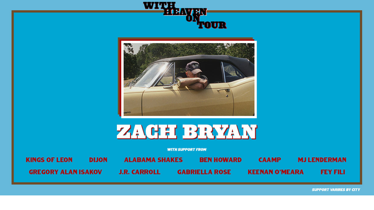 Just announced! Zach Bryan’s With Heaven On Tour is coming to Charlotte on April 18th, 2026 with Caamp and J.R. Carroll.