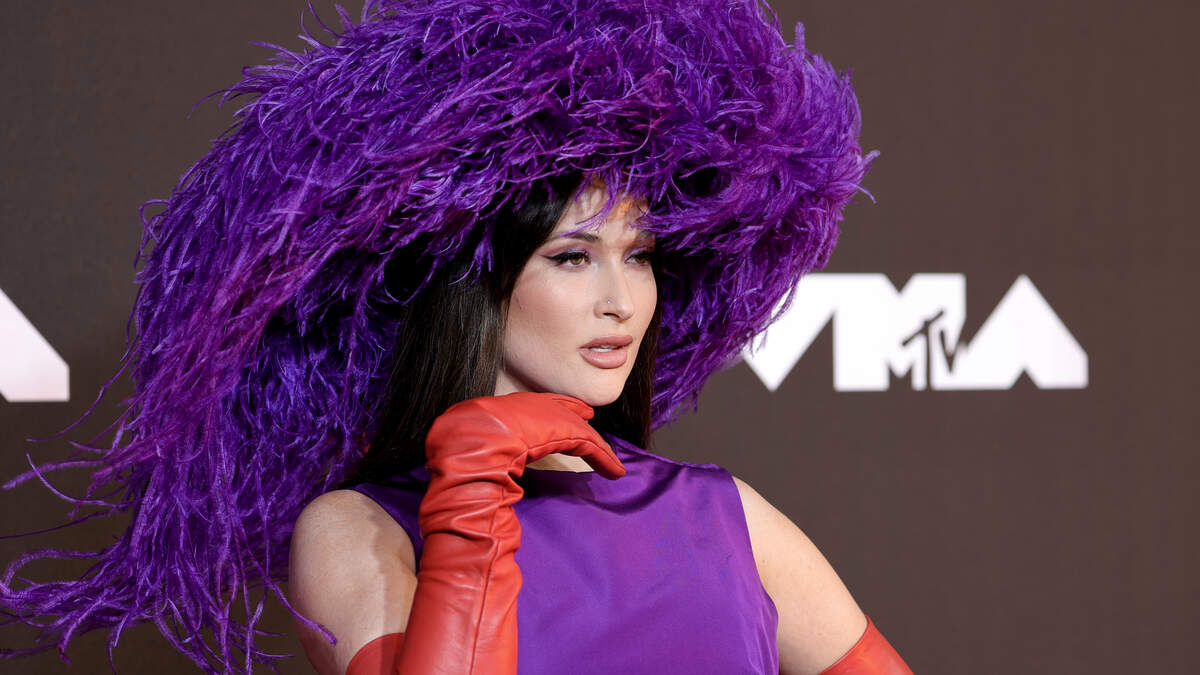 Well, that's a fashion statement to say the least! Kacey Musgraves showed up to the VMA's red carpet in a very bright outfit. A purple dress with a purple feathered headdress with long red gloves. She looks amazing but at first glance, it reminds me of a cross between fraggle rock and a purple big bird. Kacey also took the stage last night during the VMAs, performing her new single, "Star-Crossed." If you missed the performance, you can check it out below.